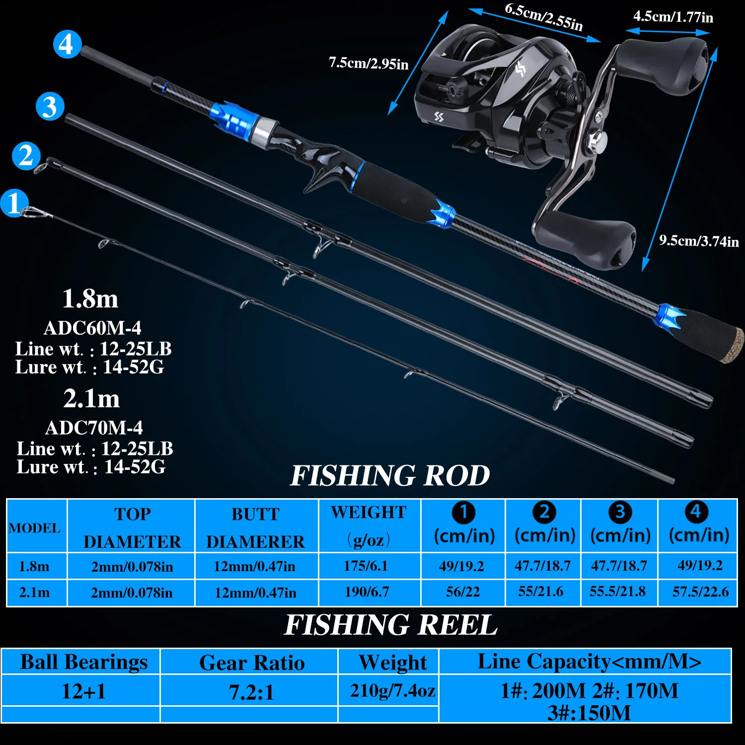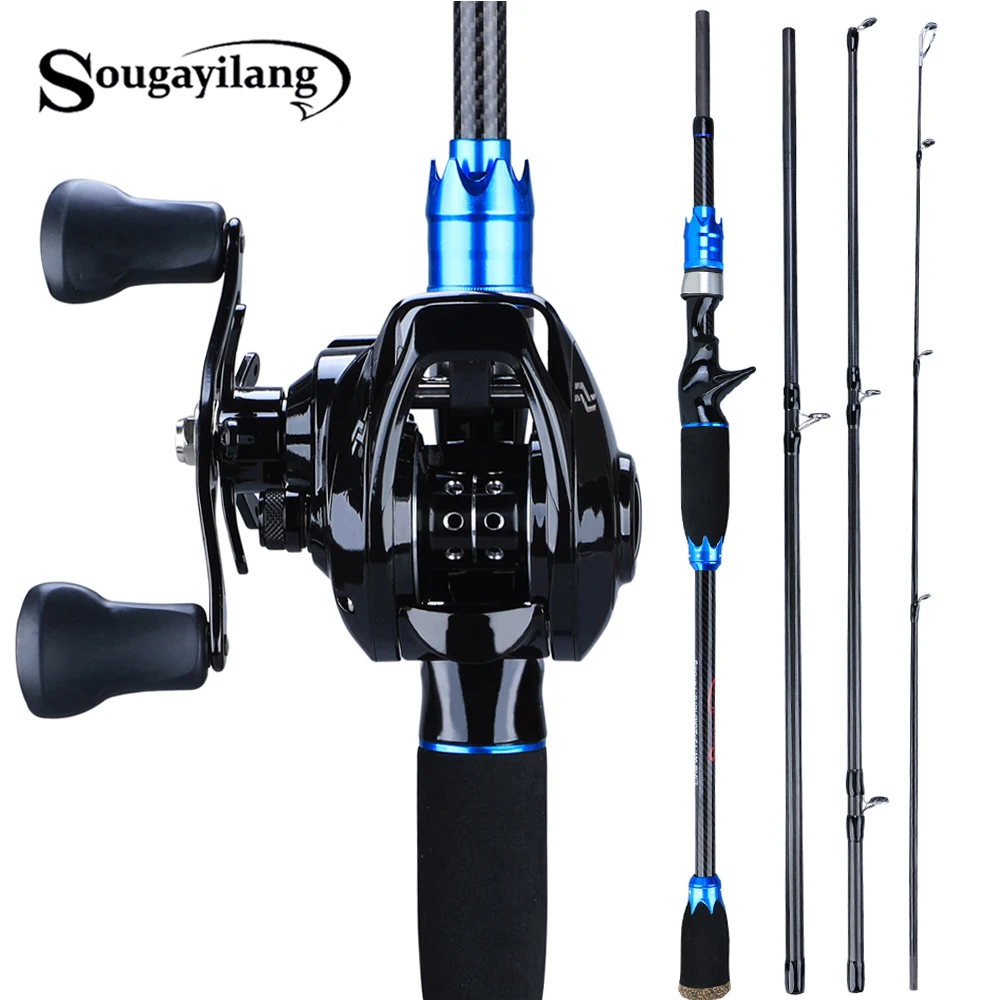 New Product Sougayilang 1.8m 2.1m Lure Fishing Rod and 12+1BB Baitcasting Reel 4 Sections Carbon Rod and Castin